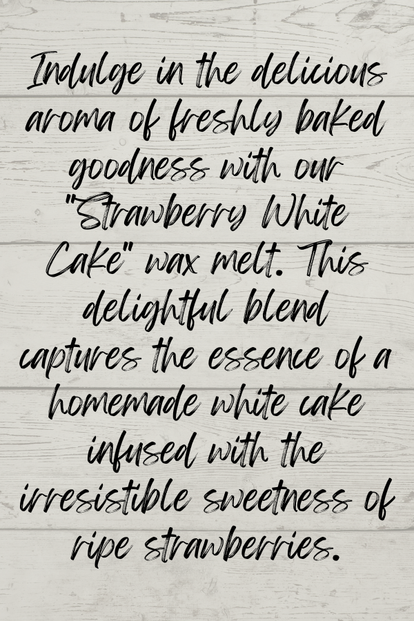 Indulge in the delicious aroma of freshly baked goodness with our "Strawberry White Cake" wax melt. This delightful blend captures the essence of a homemade white cake infused with the irresistible sweetness of ripe strawberries.
